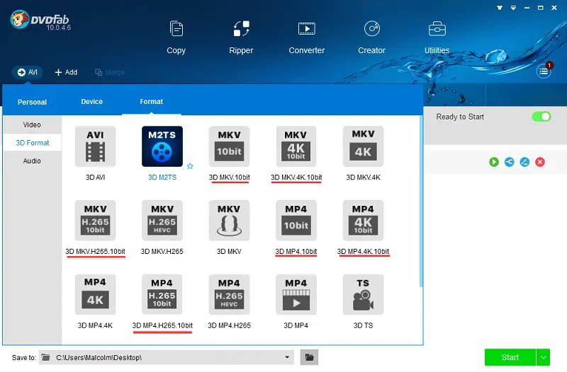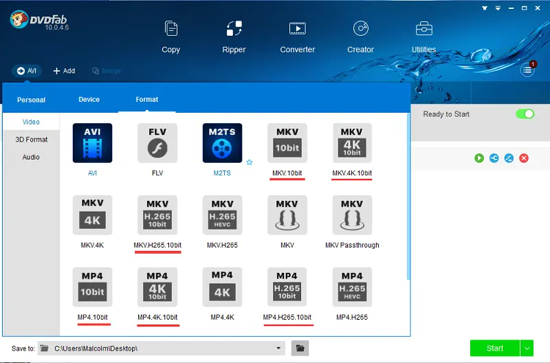 Currently, the majority of desktop monitors, laptop screens, mobile device screens, or media projectors on the market are still displaying images with 8-bit depth. Only a few are capable of presenting images with 10-bit color depth. On the other hand, human eyes can barely see the difference between the 8-bit images and the 10-bit images. That said, if you do have a device, might be your smart TV or your projector, which is capable of displaying videos in 10-bit color depth, then you can use DVDFab, including DVD Ripper , Blu-ray Ripper , UHD Ripper and Video Converter , to convert your DVDs, Blu-rays and other videos with the 10-bit conversion profiles.