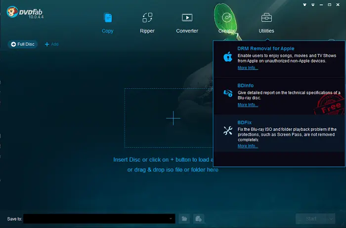 However, with BDFix, the unique feature available under the Utilities tab of DVDFab, this playback issue can be fixed in around one minute (actual speed may vary on different sizes of the sources and your internet speed). How? The process is simple. After the startup of DVDFab, go to the Utilities tab, and then select the BDFix tool, and then load the problematic Blu-ray ISO file or folder to apply the fix.