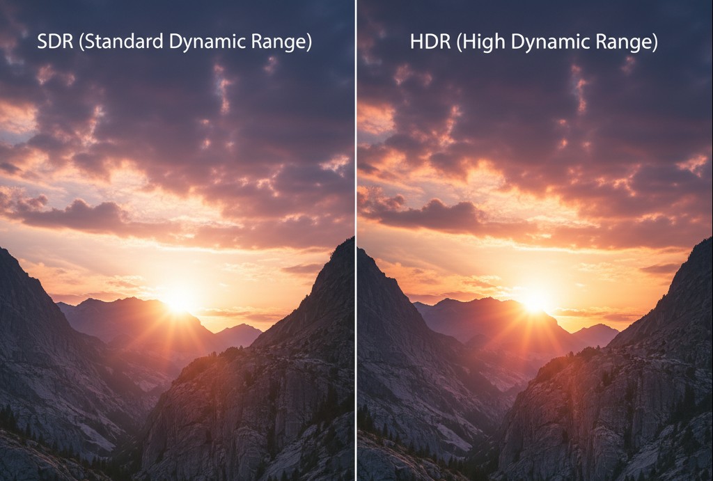 High Dynamic Range (HDR) is a technology that lets videos show brighter highlights and darker shadows, giving more contrast and richer color than Standard Dynamic Range (SDR). Most HDR formats use 10-bit color, which helps reduce visible banding in smooth gradients.