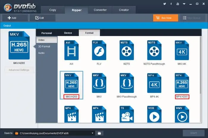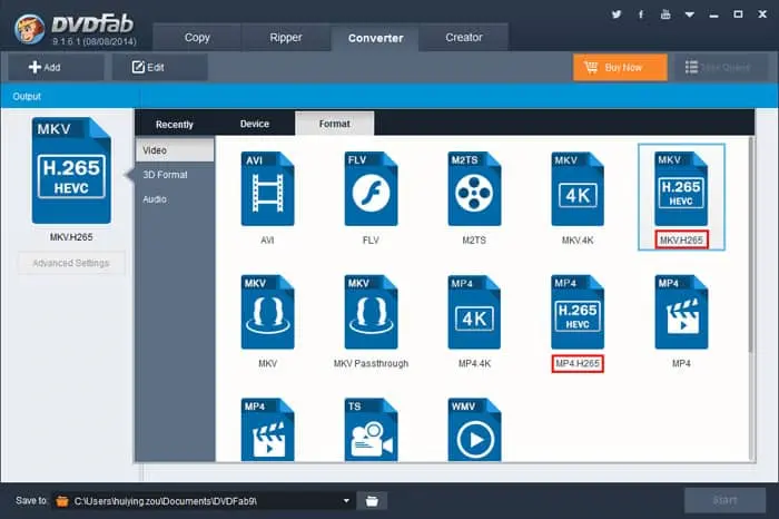 DVDFab is a powerful H.265 encoder, decoder and converter. It can help you deal with the above issues perfectly. DVD Ripper and Blu-ray Ripper can rip and convert DVD/Blu-ray movies to H.265 videos; Video Converter can convert non-H.265 videos to H.265 videos, and vice versa. It's easy to use, and performs professionally.