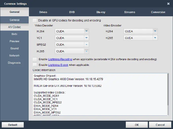 DVDFab HEVC CUDA is applied in three products, namely, DVD Ripper, Blu-ray Ripper and Video Converter. So customers who own one of these products are lucky enough to take the first bite as soon as the official version is available to the public. But remember, to use this feature, users to must enable this option at the Common Settings> General>A/V Codec, and then set both the video decoder and video encoder as CUDA there.